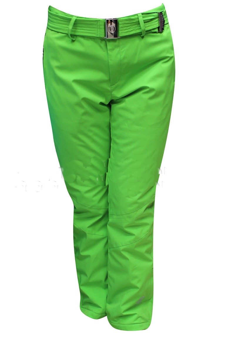 Женские горнолыжные брюки, мебранные ткани (качество+защита) регулируемый размер талии (резинка по бокам и ремень), защита поясничной части спины, отстегивающиеся лямки. Брюки имеют защитные муфты в нижней части штанины, которые предотвращают попадание снега под брюки, так же имеют анатомический крой колена.