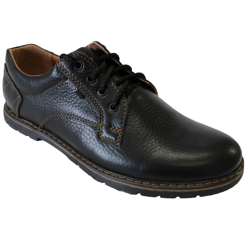 Мужские кожаные туфли черного цвета. Модель изготовлена из натуральной кожи, как верх, так и внутренняя отделка. Дополнены шнуровкой.